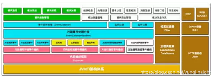 JVM-Sandbox 由纯 Java 编码完成,基于 JVMTI 技术规范,为观察和改变代码运行结果提供了即插即用模块接口的容器,提供两个核心功能:实时无侵入 AOP 框架和动态可插拔的模块管理容器。