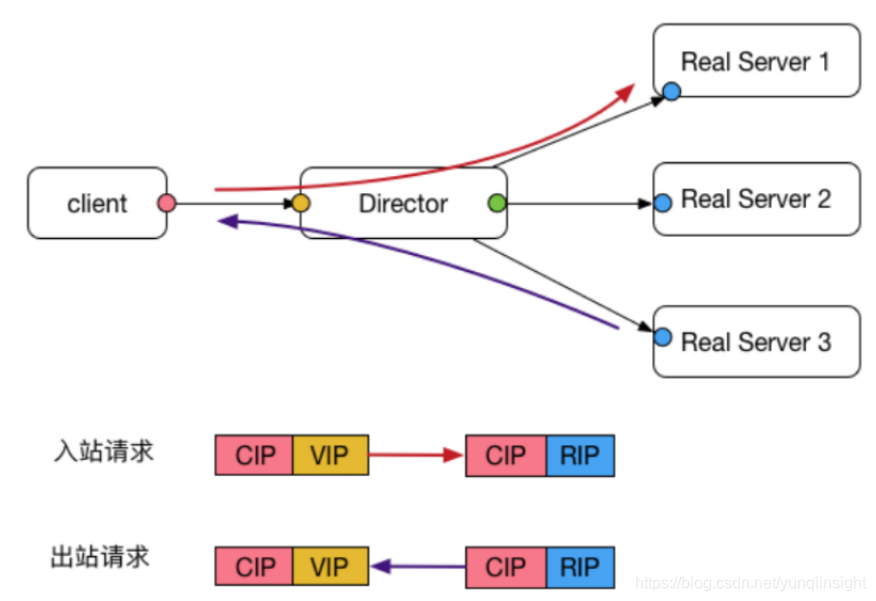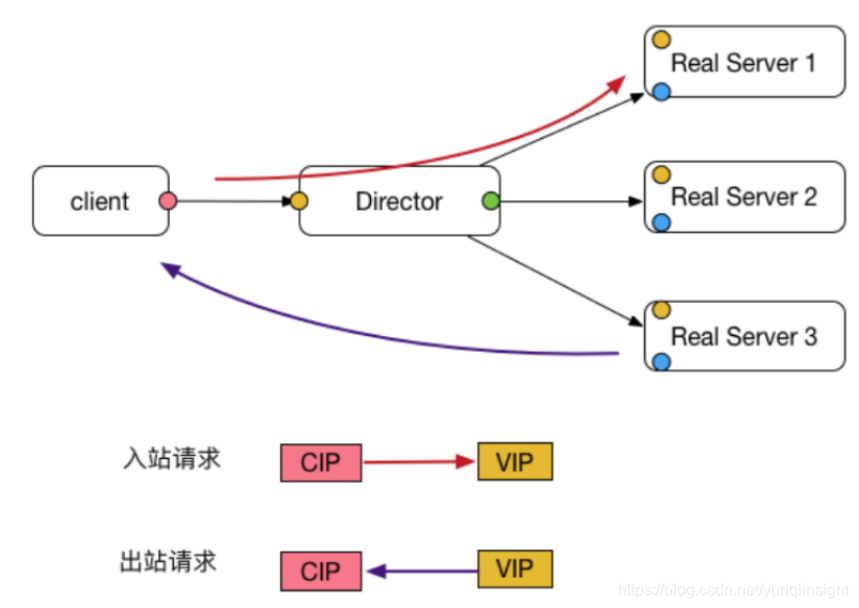 - 因为回复包的目的地址是cip所以不需要经过lvs,可以直接发给client