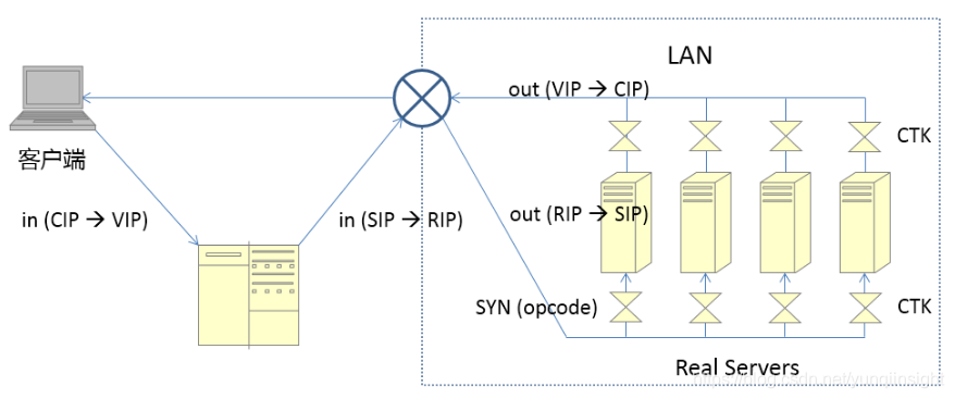 - client发出请求(cip,vip)