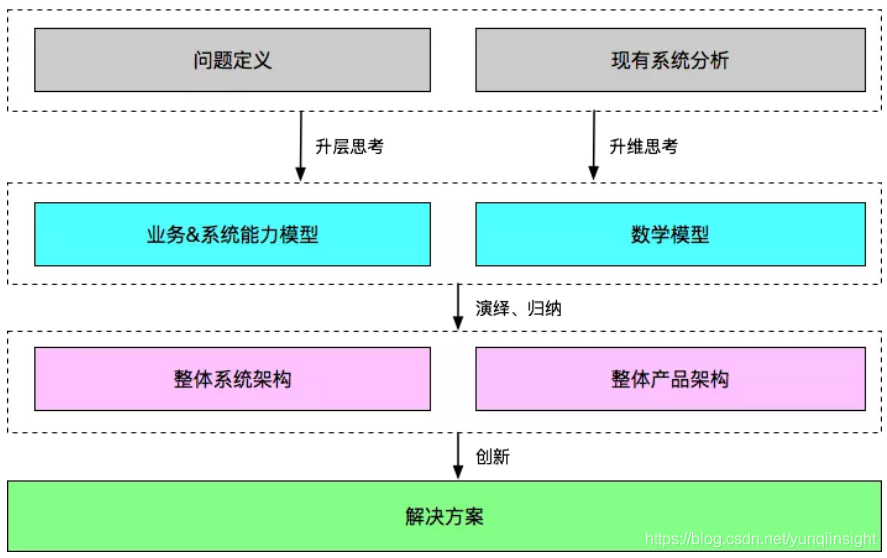 3.问题定义中,需要对问题进行升层思考后再进行升维思考,从而真正抓到问题的本质,理清和挖掘清楚需求;要善用第一性原理思维进行分析思考问题。