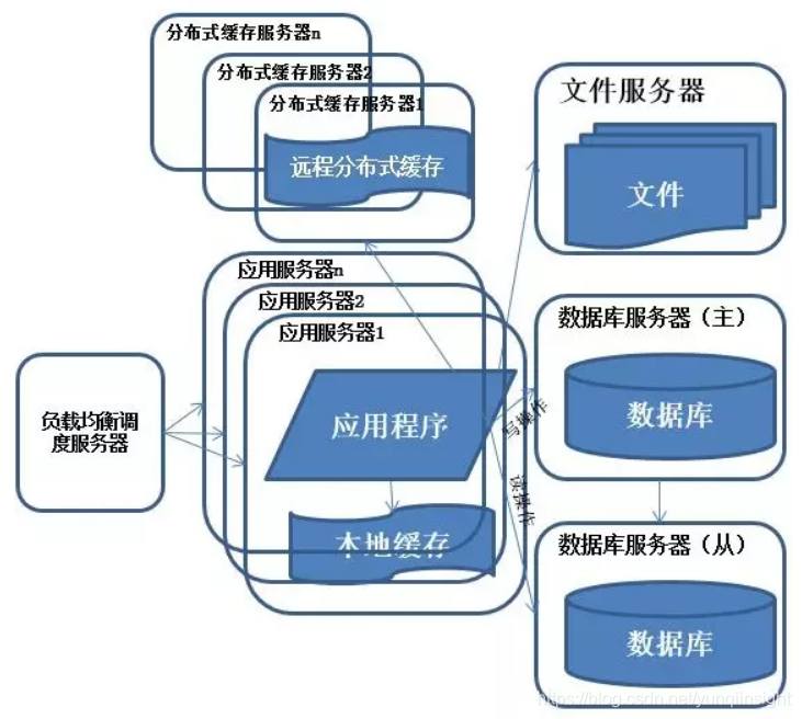 特征:多台服务器通过负载均衡同时向外部提供服务,解决单台服务器处理能力和存储空间上限的问题。