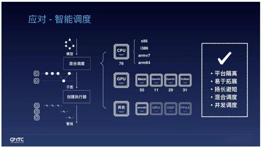 一款优秀的端侧推理引擎,就需要在这样碎片化的环境下,利用设备有限的资源,尽可能发挥出设备的性能。为此,也需要在转换、调度、执行上加入相应的优化策略。下文,会就其中的部分展开说明。