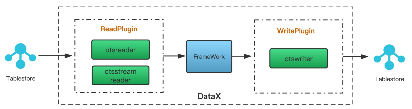 表格存储(Tablestore)是阿里云自研的NoSQL多模型数据库,提供海量结构化数据存储以及快速的查询和分析服务,表格存储的分布式存储和强大的索引引擎能够提供PB级存储、千万TPS以及毫秒级延迟的服务能力。DataX是阿里巴巴集团内被广泛使用的离线数据同步工具,DataX本身作为数据同步框架,将不同数据源的同步抽象为从源头数据源读取数据的Reader插件,以及向目标端写入数据的Writer插件。