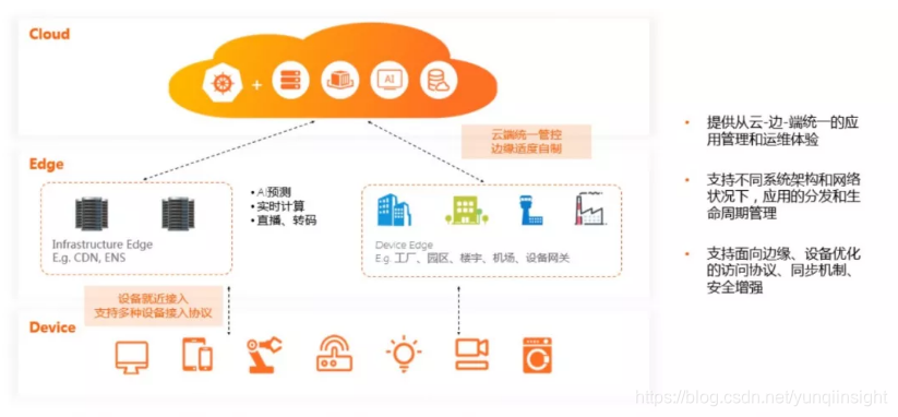 云:传统云计算的中心节点,有丰富的云计算产品形态和资源,是边缘计算的管控端,负责全网算力和数据的统一管理、调度、存储。