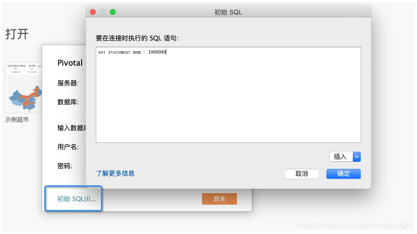 连接建立时可以通过初始化SQL设置特定参数,例如: