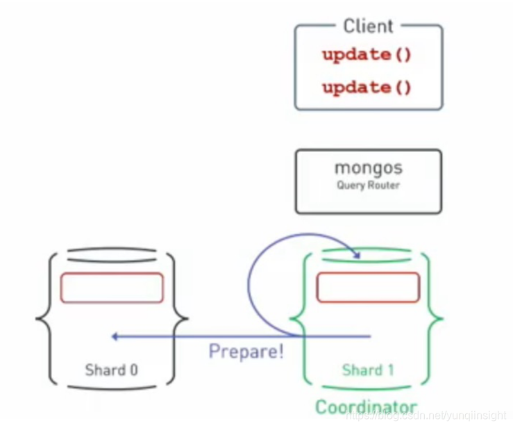 4.2 支持的分布式事务是硬核技术,目前具备这个能力的开源数据库本身也不多,MongoDB 采用二阶段提交的方式(细节以后再分析),实现在多个 Shard 间发生的修改,要么同时发生,要么都不发生,保证事务的 ACID 特性。