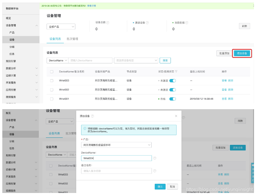 我们可以预览,看看是否可以添加/删除设备。注意这里的添加/删除是会直接影响物联网平台上的设备的。