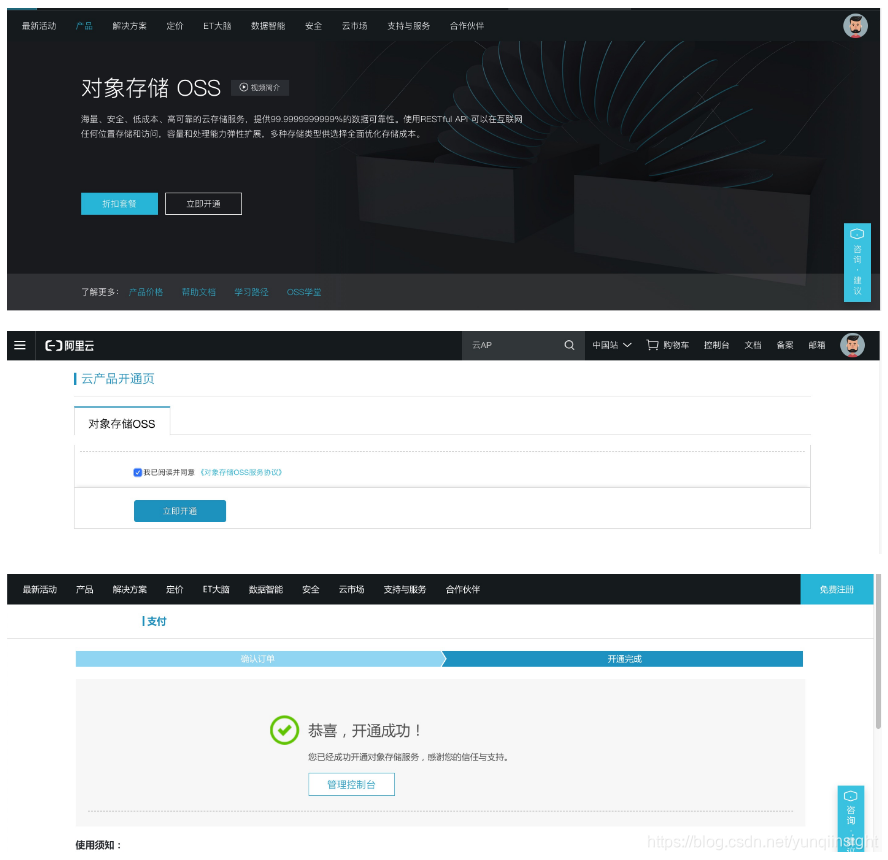 阿里云对象存储服务(Object Storage Service,简称 OSS),是阿里云提供的海量、安全、低成本、高可靠的云存储服务。您可以通过调用 API,在任何应用、任何时间、任何地点上传和下载数据,也可以通过 Web 控制台对数据进行简单的管理。OSS 适合存放任意类型的文件,适合各种网站、开发企业及开发者使用。