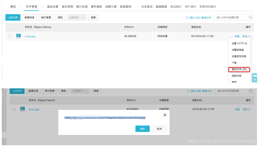 然后点击文件右方的操作项里的“复制文件URL”,把复制的URL粘贴到浏览器,看看能否预览。