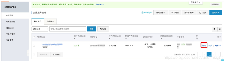 开通以后进入管理控制台,会看到自己已经付费的实例出现,进入管理。