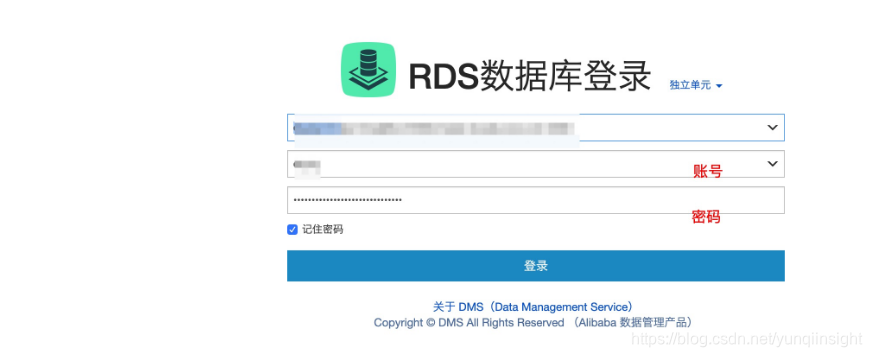 完成后返回实例控制页,点击登录数据库,输入刚才设置的账号密码,即可登入RDS数据库。
