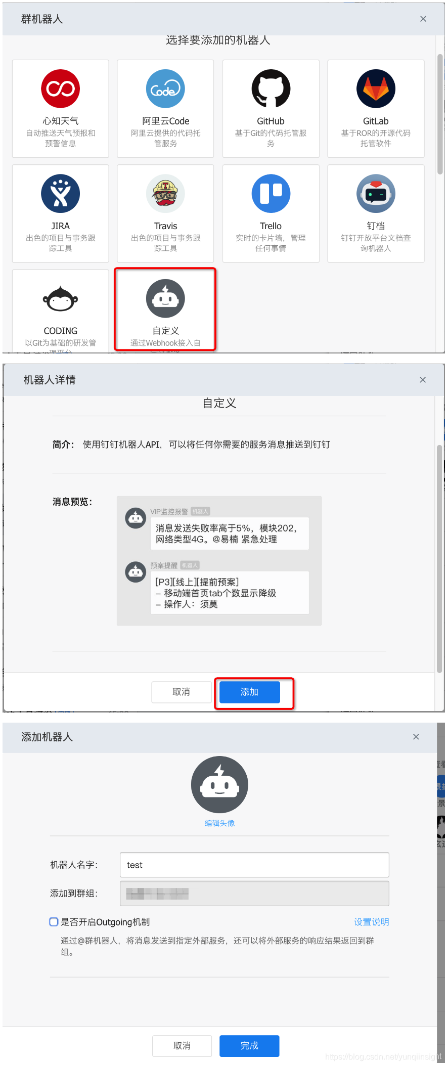钉钉机器人的Webhook填入你要推送的钉钉群的钉钉机器人Webhook。