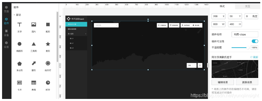 如同示例,我们需要一个指示设备GIS的地图以及一个展示设备状况的列表。在组件栏对应的是这两个组件。