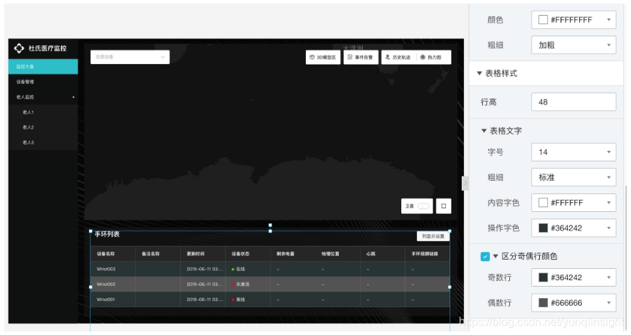 这样设备管理页就完成了,最后就是每个设备的详情页,也就是每个监控手环的信息展览页。
