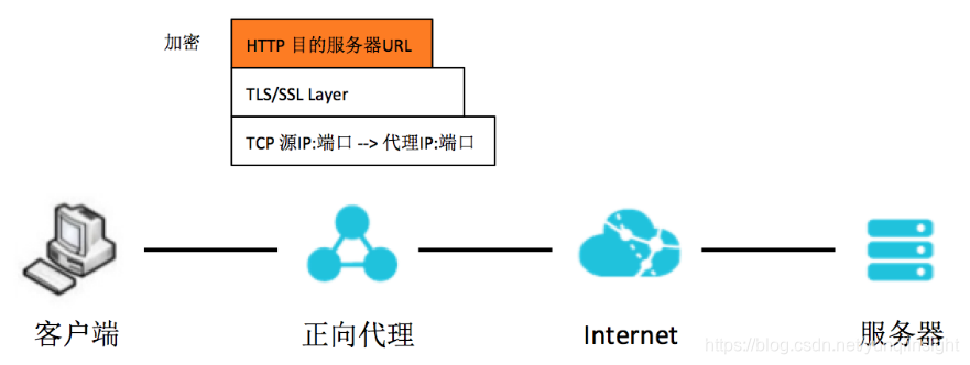 而作为正向代理在处理客户端发过来的流量时,HTTP加密封装在了TLS/SSL中,代理服务器无法看到客户端请求URL中想要访问的域名,如下图。所以代理HTTPS流量,相比于HTTP,需要做一些特殊处理。