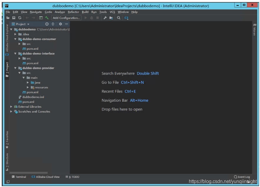 如下图所示,就完成了一个完整的 Dubbo 工程的创建了,此工程的结构和Apache Dubbo 官方样例工程完全一致。