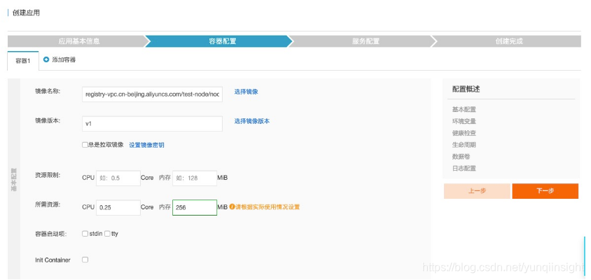 - 配置应用容器,使用如下镜像:registry.cn-beijing.aliyuncs.com/test-node/node-server:v1
