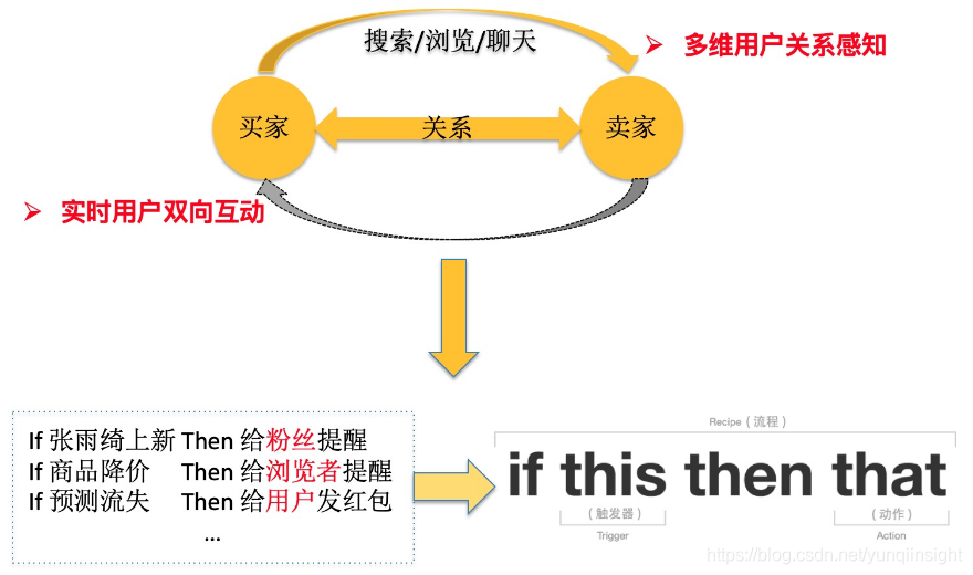 闲鱼IFTTT把之前平台与用户的互动、买家到卖家的联系,切换称闲鱼用户之间天然的关系互动,对用户骚扰更少且激活拉回的效果更好,我们基于这个场景设计闲鱼IFTTT的技术方案。