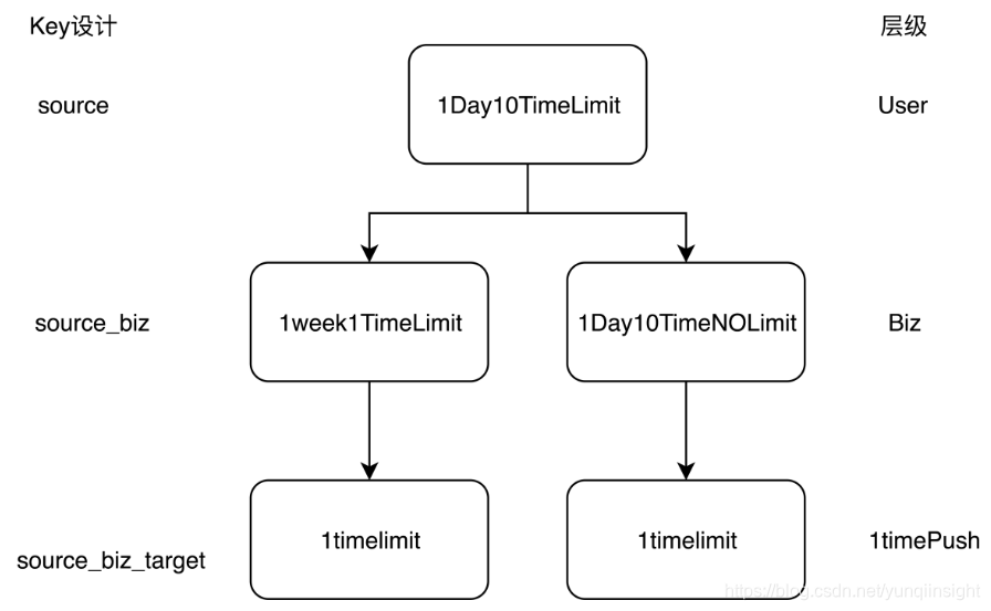 疲劳度是防止用户被骚扰的关键,我们针对疲劳度进行了分层设计,分为三层,第一层为用户级别疲劳度,控制一个用户在一个周期内收到消息数量;第二层是业务维度,控制用户在一个周期内收到某个业务的消息数量;第三层是目标级别,控制用户在一个周期内收到同一个发送者消息数量。