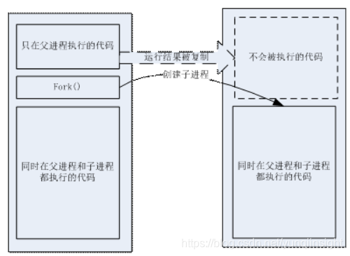 在多进程的编码模型上,fork()函数可以说一个非常典型的代表。在一段代码中,fork()调用之后的部分,可能会被新的进程中执行。要区分当前代码的所在进程,要靠fork()的返回值变量。这种做法,等于把多个进程的代码都合并到一块,然后通过某些变量作为标志来划分。这样的写法,对于不同进程代码大部份相同的“同质进程”来说,还是比较方便的,最怕就是有大量的不同逻辑要用不同的进程来处理,这种情况下,我们就只能自己通过规范fork()附近的代码,来控制混乱的局面。比较典型的是把fork()附近的代码弄成一个类似分发器(dispatcher)的形式,把不同功能的代码放到不同的函数中,以fork之前的标记变量来决定如何调用。