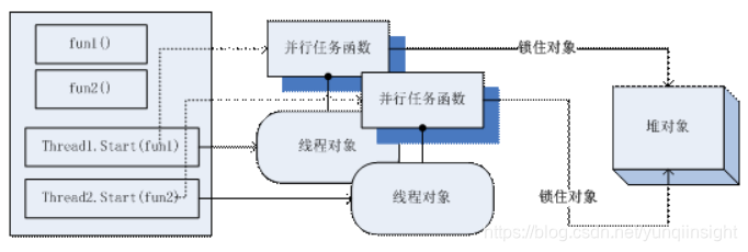 在我们使用多线程的API时,情况就会好很多,我们可以用一个函数指针,或者一个带回调方法的对象,作为线程执行的主体,并且以句柄或者对象的形式来控制这些线程。作为开发人员,我们只要掌握了对线程的启动、停止等有限的几个API,就能很好的对并行的多线程进行控制。这对比多进程的fork()来说,从代码上看会更直观,只是我们必须要分清楚调用一个函数,和新建一个线程去调用一个函数,之间的差别:新建线程去调用函数,这个操作会很快的结束,并不会依序去执行那个函数,而是代表着,那个函数中的代码,可能和线程调用之后的代码,交替的执行。
