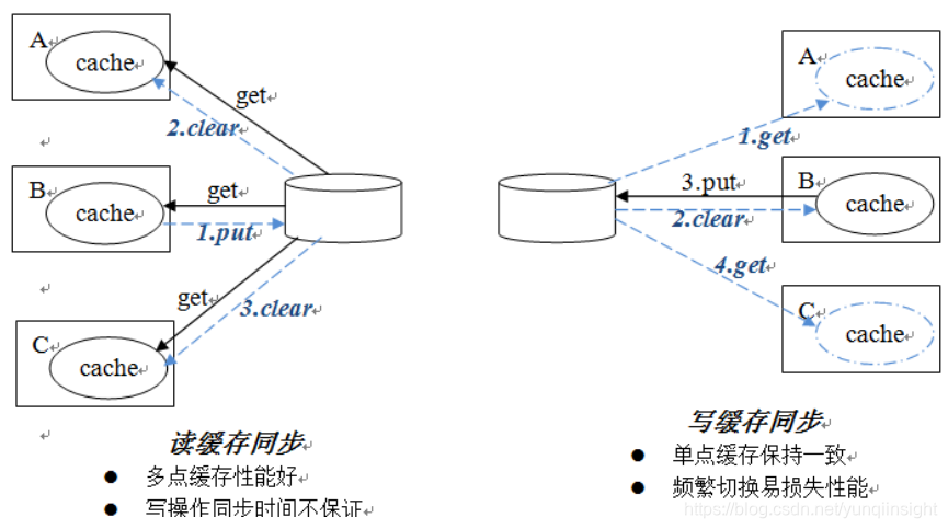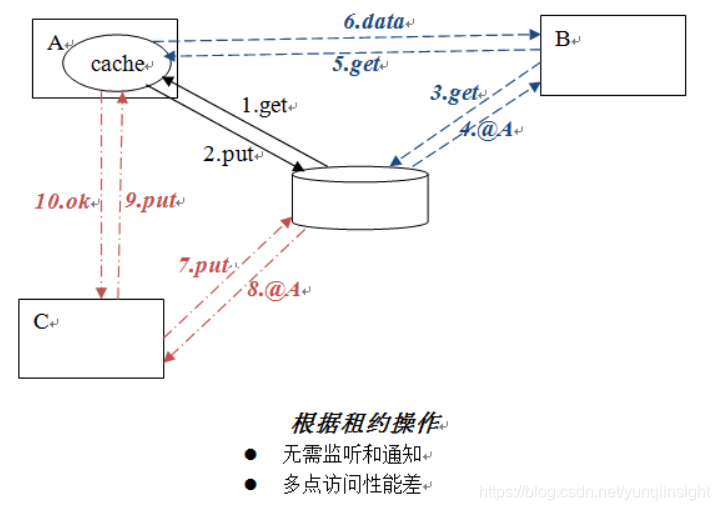 l 租约转发。同样,我们把存放某个KEY的缓存的进程,称为持有这个KEY数据的“租约”,同时也要登记到集群的共享数据进程中。和上面租约清理不同的地方在于,如果发现持有租约的进程不是本次操作的进程,就会把整个数据的读、写请求,都通过网络“转发”个持有租约的进程,然后等待他的操作结果返回。这种做法由于每次操作都需要查询租约,所以性能会稍微低一些;但如果缓存命中率不高,这种做法能把缓存的操作分担到多个进程上,而且也无需清理缓存,这比租约清理的策略适应性更好。