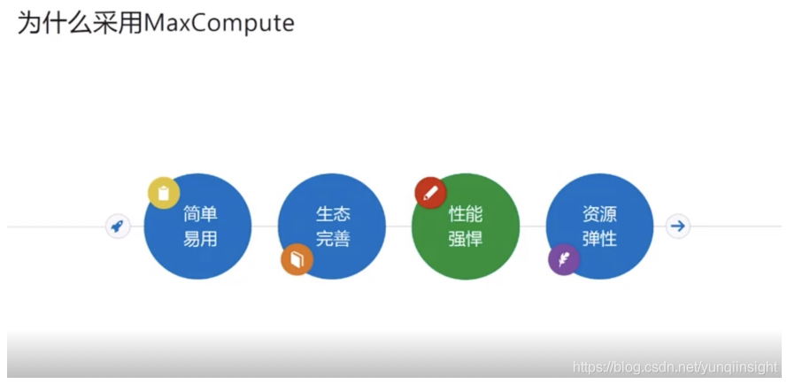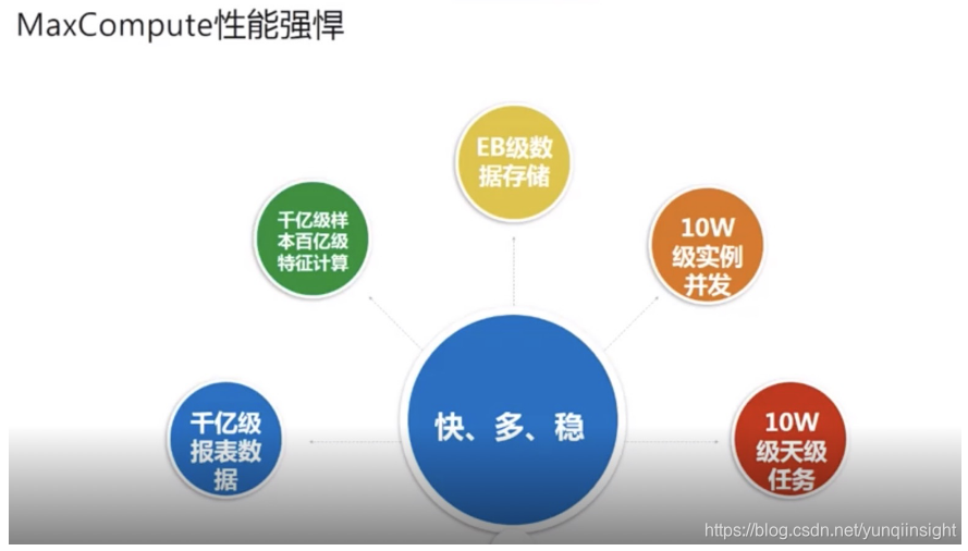 第三个,MaxCompute快速的扩容能力,比如说突然有一个比较强的业务需求,发现数据跑不动了,计算资源不够,所有的队列都堵死了,这个时候其实可以直接跟运维说一声,帮忙一键扩容,他两秒钟敲一个命令就搞定了。这样的话,所有的资源可以迅速的消化下去。