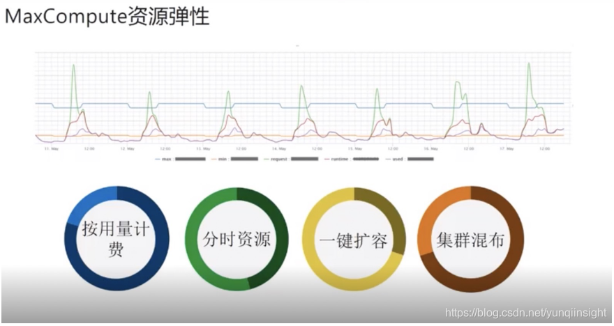 第二个,实际上MaxCompue计算资源是可以分时的,比如说生产队列,凌晨的时候会调高一些,保证报表能够尽快出来。到白天时候,让开发的计算资源高一些,可以让分析师、开发去临时跑一些数据,会更顺畅一些。