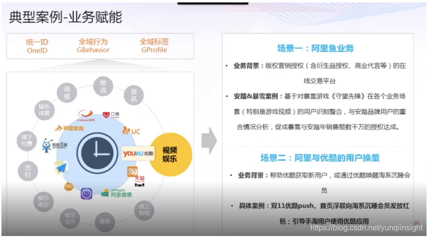 这张图其实就是我们从Hadoop迁到MaxCompute平台上以来,两个非常经典的案例。我们通过数据中台对不同场景的用户打通,来去赋能到两个不同的场景,提升业务价值。