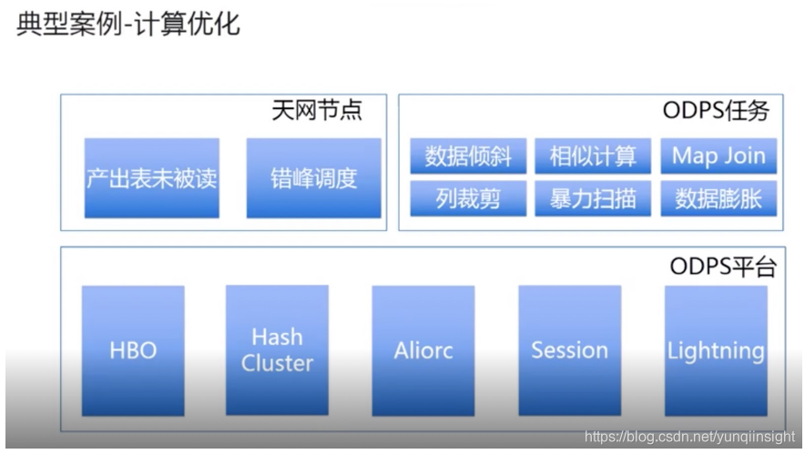 在计算平台的角度,我们也持续的在使用MaxCompute推出的一些非常高级的用法,比如我们这边的HBO、Hash Cluster、Aliorc,HBO就是我们基于一个历史的优化,这样避免了用户不知道怎么调参,我可能为了自己任务快一点,就调一个特别大的参数,这样的话,对集成的资源是非常浪费的。通过这个功能,用户就不用去调参数,集群自动调好,用户就写好自己业务逻辑就好了。