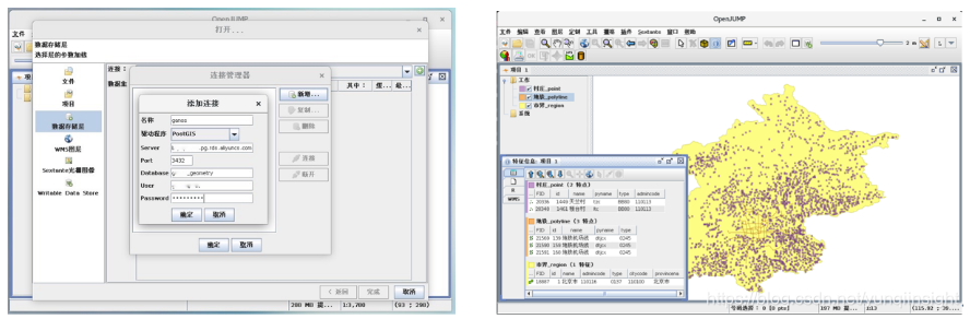 (3)OpenJump连接Ganos ,可浏览、查看、编辑、分析Ganos中的空间数据。
