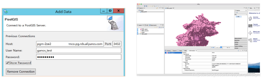 (4)uDig连接Ganos ,可浏览、查看、编辑、分析Ganos中的空间数据。