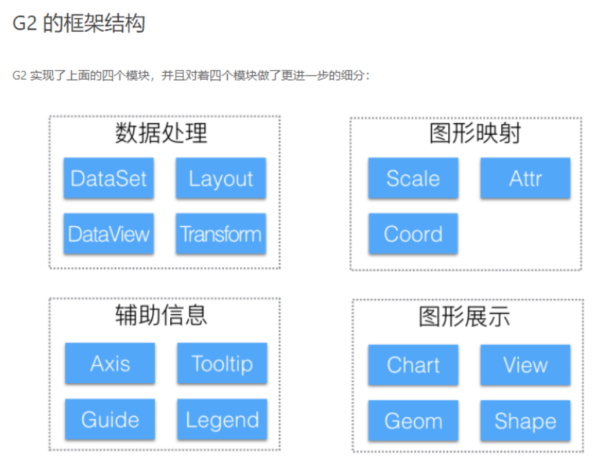 - 图形展示模块,决定使用何种图形来展示数据,点、线、面等图形标记