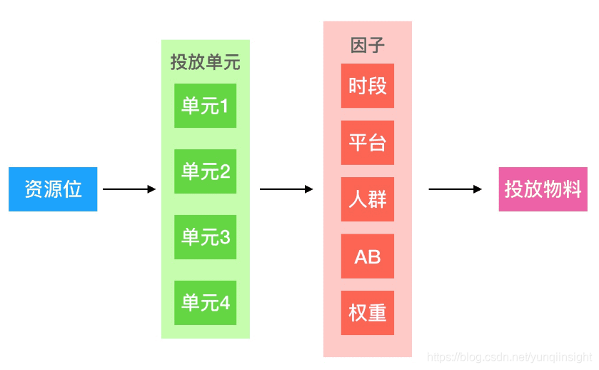 前述文章说到,同一个banner,可能对新用户投放的是红包,对年轻男孩子投放的是手机数码内容,对年轻女孩子投放的是美妆服饰。我们把这个连接了资源位、投放物料与多个投放因子的桥梁叫做投放单元。
