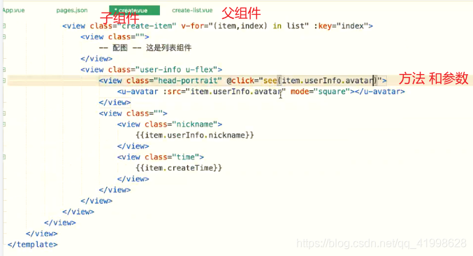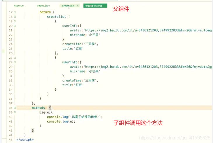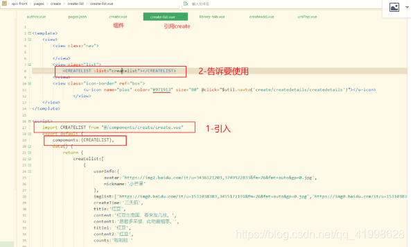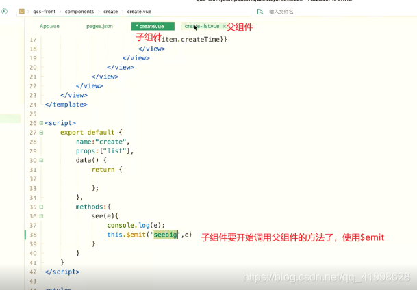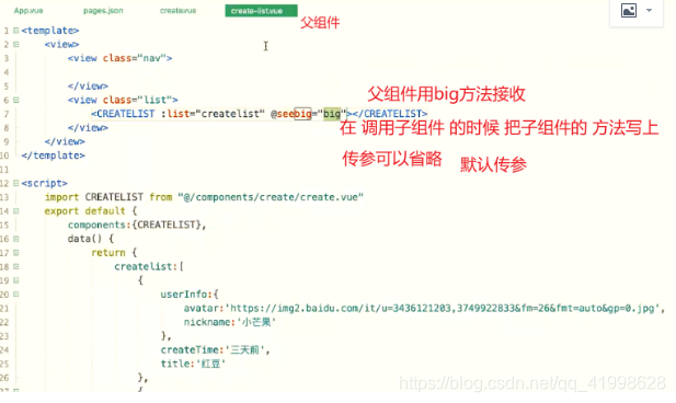 1.父组件内引入子组件,并且子组件使用父组件内的数据