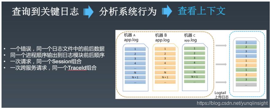 当我们通过查询的方式定位到关键的日志后,需要分析当时系统的行为,并还原出当时的现场情况。而现场其实就是当时的日志上下文,例如: