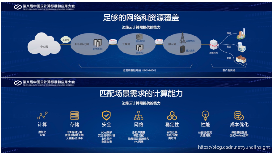 边缘云计算提供的基础能力,主要包括网络和资源覆盖,以及匹配场景需求的计算、存储、安全、网络、稳定性、性能、成本优化等能力。其中很多方案是基于中心云的虚拟化方案进行改造的,比如计算虚拟化、块存储、VPC网络等,当然方案改造也有非常大的挑战,因为飞天系统的很多方案是基于规模化设计。有些则是新场景下的新方案,比如边缘回云的链路优化,资源调度等。