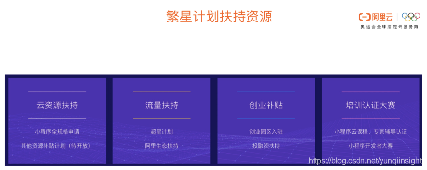 繁星计划在云栖社区有一个入口,里面有小程序能力的展示,截图就是针对当前繁星计划后续给大家提供的一些扶持计划。