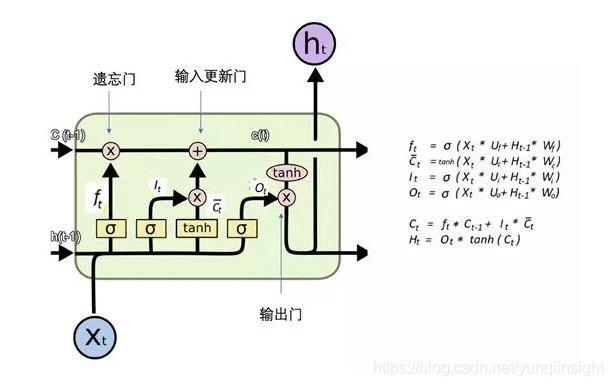 在 lstmcell 中, 包含了通常意义上的遗忘门(点乘,决定什么要从状态中去除),输入更新门(按位相加,决定什么要添加到状态中去),输出门(点乘,决定状态的输出是什么?)虽然看起来很复杂,本质上是矩阵的运算。
