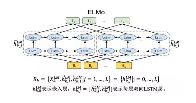 ELMo 预训练时的网络结构图与传统语言模型有点类似,直观理解为将中间的非线性层换成了 LSTM,利用 LSTM 网络更好的提取每个单词在当前语境中的上下文信息,同时增加了前向和后向上下文信息。.