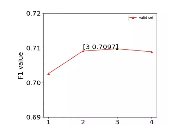 直观上来讲,biLMs 的较高层次的 LSTM 向量抓住的是词汇的语义信息, biLMs 的较低层次的 LSTM 向量抓住的是词汇的语法信息。这种深度模型所带来的分层效果使得将一套词向量应用于不同任务有了可能性,因为每个任务所需要的信息量是不同的。另外 LSTM 的层数不宜过多,多层 LSTM 网络不是很容易 train 好,存在过拟合问题。如下图是一个多层 LSTM 用在文本分类问题的实验结果,随着 LSTM 层数增多,模型效果先增加后下降。