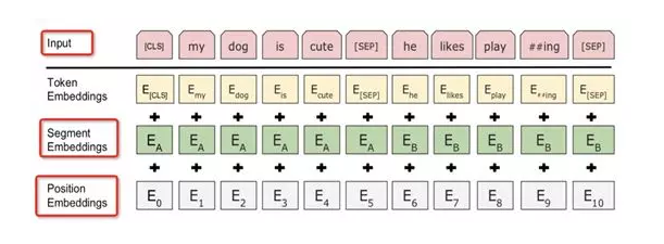 Segment Embeddings:在预训练的句对预测任务及问答、相似匹配等任务中,需要对前后句子做区分,将句对输入同一序列,以特殊标记 [SEP] 分割,同时对第一个句子的每个 token 添加 Sentence A Embedding, 第二个句子添加 Sentence BEmbedding,实验中让EA =1, EB =0。