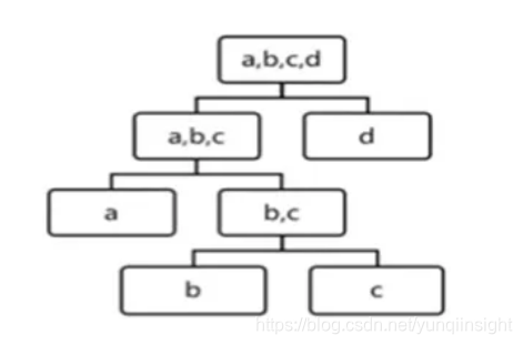 如图8所示,用iForest切割4个数据,b和c的高度为3,a的高度为2,d的高度为1,d最先被孤立,它最有可能异常。