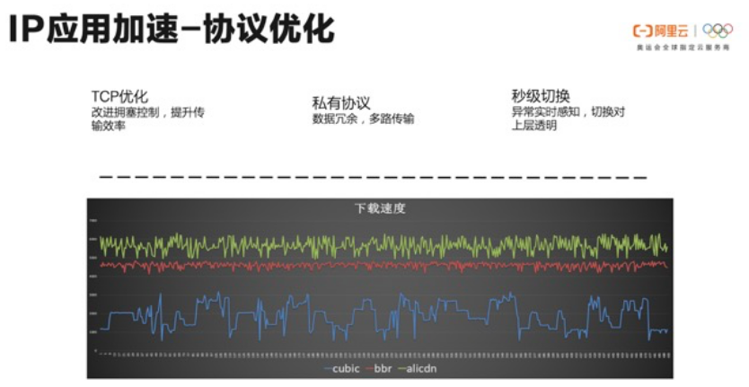 下图是在持续丢包的场景下的测试数据,阿里云自研的TCP传输协议比现在最新的bbr算法效果更优。