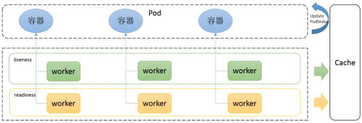 这是一个Manager的接口声明,该Manager负载pod的探测。当执行AddPod时,会为Pod中每一个容器创建一个执行探测任务的worker, 该worker会对所分配的容器进行周期性的探测,并把探测结果缓存。当UpdatePodStatus方法执行时,该manager会使用探测的缓存结果设置PodStatus为近似Ready的状态: