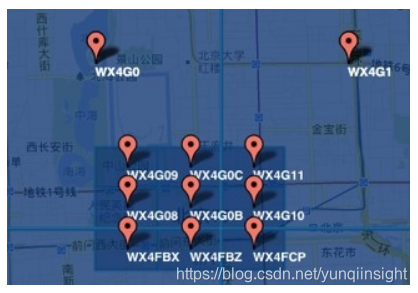 - 但是由于天安门处于 WX4G0B 的边缘位置,并不一定处在正中心。这就需要将 WX4G0B 附近的8个区域同时纳入搜索,故搜索 WX4G0B、WX4G09、WX4G0C 一共9个编码的景点
