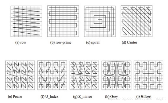 除Peano空间填充曲线外,还有很多空间填充曲线,如图所示,其中效果公认较好是Hilbert空间填充曲线,相较于Peano曲线而言,Hilbert曲线没有较大的突变。为什么GeoHash不选择Hilbert空间填充曲线呢?可能是Peano曲线思路以及计算上比较简单吧,事实上,Peano曲线就是一种四叉树线性编码方式。
