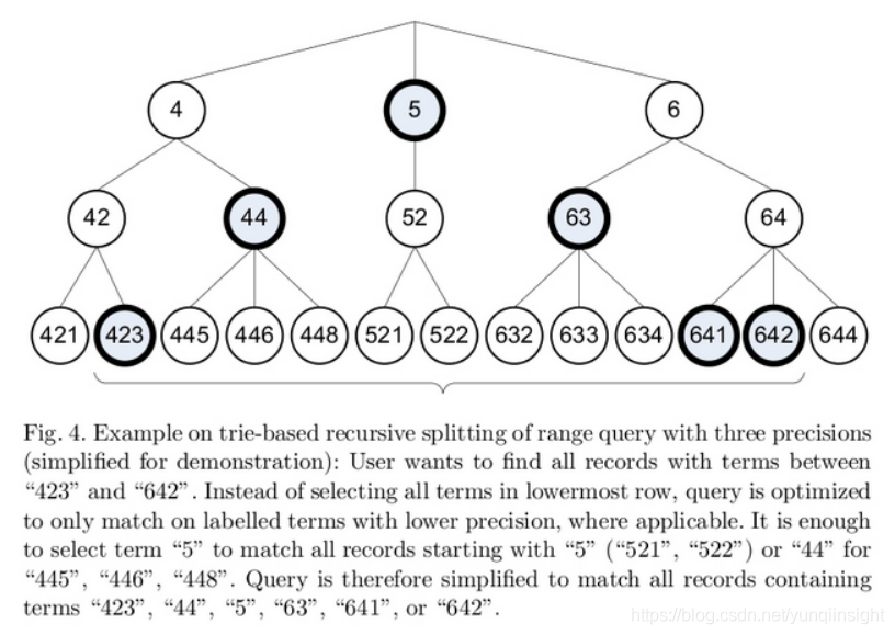 上面说了怎么索引,那么Query呢?比如我给你一个Range Query从423-642,怎么找到那6个term呢?