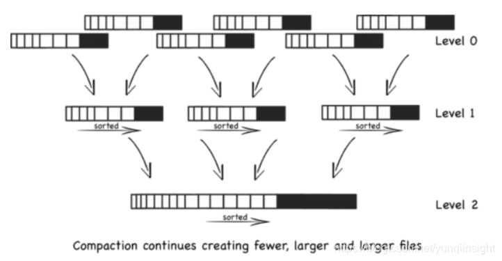 像 LevelDB 和 Cassandra解决这个问题的方法是:实现了一个分层的,而不是根据文件大小来执行合并操作。