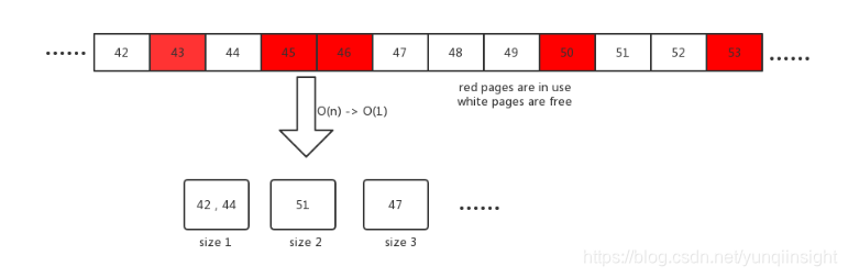 新的算法借鉴了内存管理中的segregated freelist的算法,它也使用在tcmalloc中。它将page分配时间复杂度由O(n)降为O(1), 释放从O(nlgn)降为O(1),优化效果非常明显。
